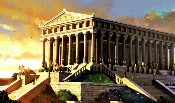 An Ancient Greek named Antipater, is quoted of the mention of her temple in his work Greek Anthology: "I have set eyes on the wall of lofty Babylon on which is a road for chariots, and the statue of Zeus by the Alpheus, and the hanging gardens, and the colossus of the Sun, and the huge labour of the high pyramids, and the vast tomb of Mausolus; but when I saw the house of Artemis that mounted to the clouds, those other marvels lost their brilliancy, and I said, "Lo, apart from Olympus, the Sun never looked on aught so grand."