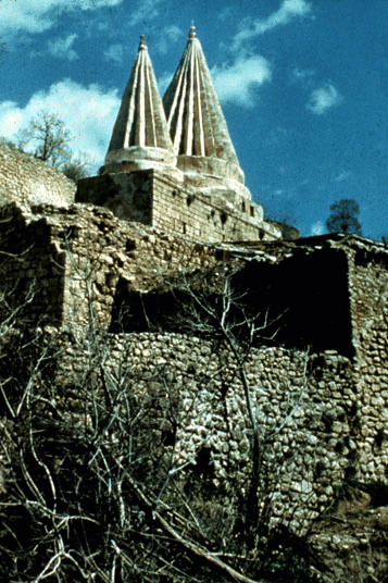 "...seven towers - the Towers of Satan [Ziarahs] -six of them trapezoidal in form, and one, the "center" on Mount Lalesh, shaped like a sharp, fluted point."